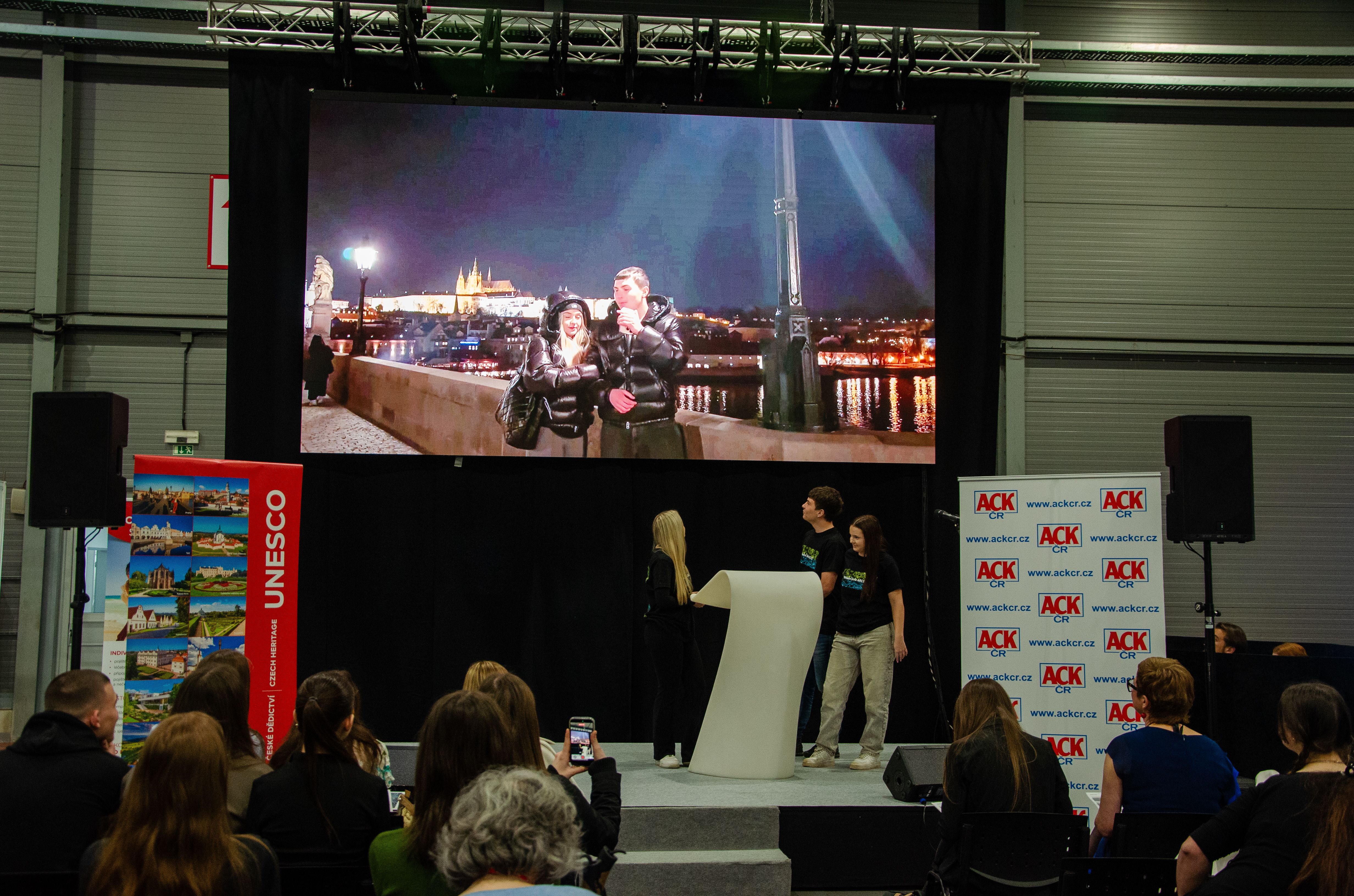 Žáci ze 3. A oboru cestovní ruch Střední školy ARCUS vytvořili v rámci veletrhu cestovního ruchu Holiday World 2026 soutěžní video a prezentaci na téma "Zpropaguj své místo". V silné konkurenci velmi dobře obstáli, na medailová umístění to ale tentokrát nestačilo. Moc jim děkujeme za dobrou prezentaci naší střední školy.